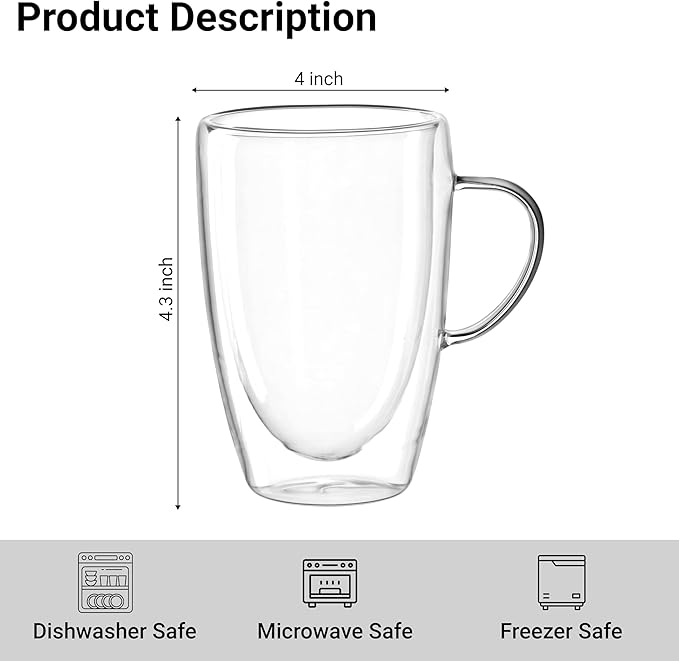 | Included Components | 2 Double Walled Glass Coffee Mugs (12oz each) |